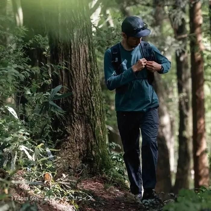 微ストレッチするポリエステル100%を使っているので、動きやすく、驚くほど早く乾き、蒸れにくいのが特徴です。