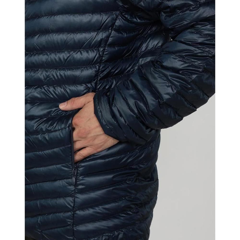 中綿には RDS認証の800+フィルパワーダックダウン(90/10) を使用し、特殊撥水加工「ExpeDRY」により湿気や汗によるロフト低下を抑制。洗濯しても撥水効果が持続し、常にドライで快適な保温性を保ちます。