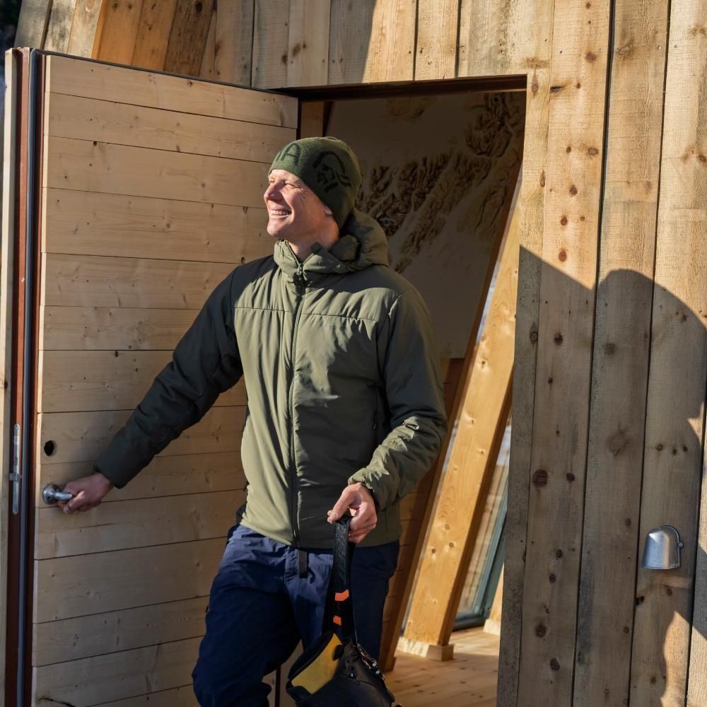ボディ60g/m²、腕&フード40g/m²のPrimaLoft®配置で快適さをキープ。