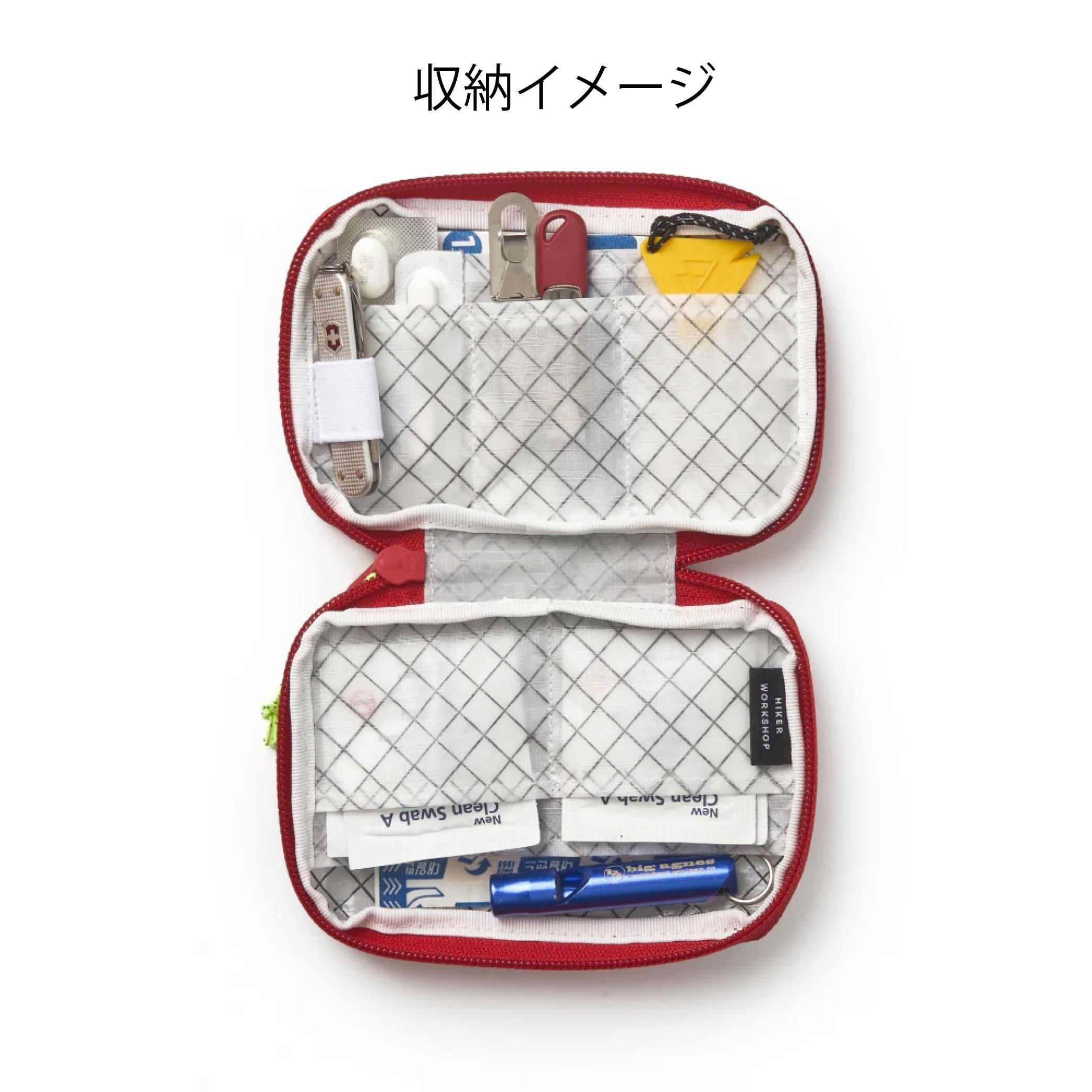 HIKER WORKSHOP「First aid kit」は、予期せぬアクシデントに素早く対応するために設計された、ミニマルでありながら高い信頼性を備えた救急キットポーチです。